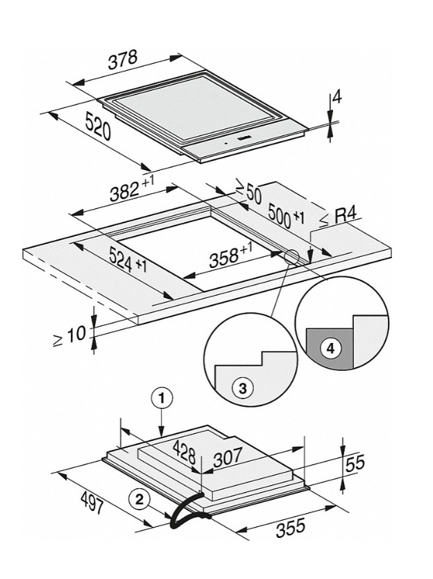 Bếp từ Domino Miele CS 7612 FL khung 378 mm