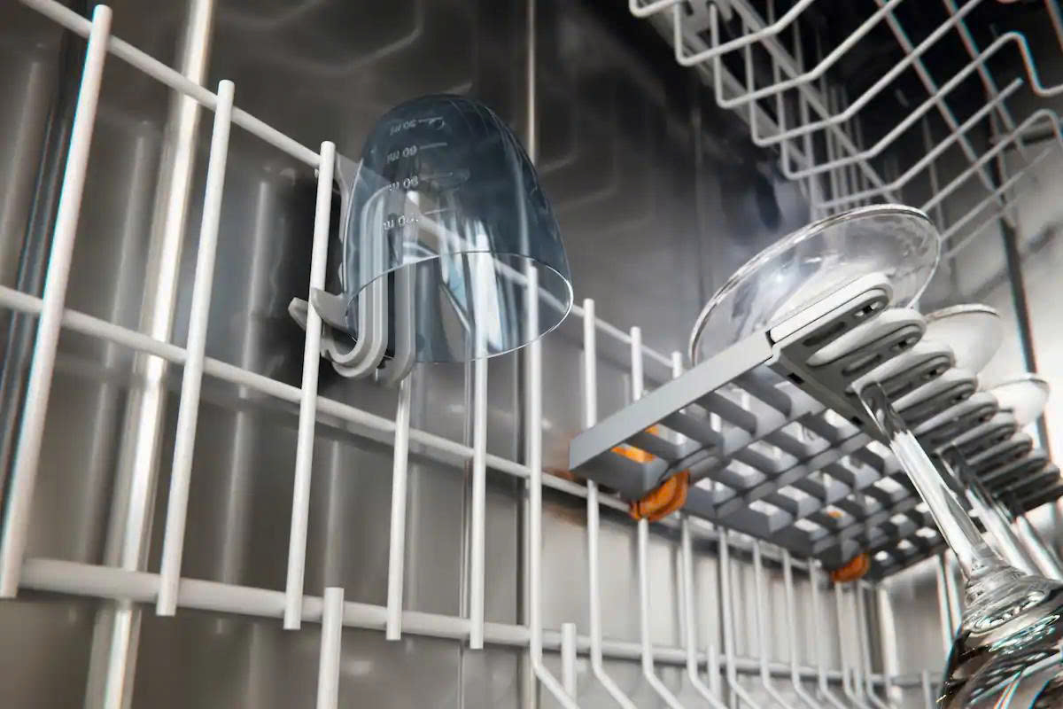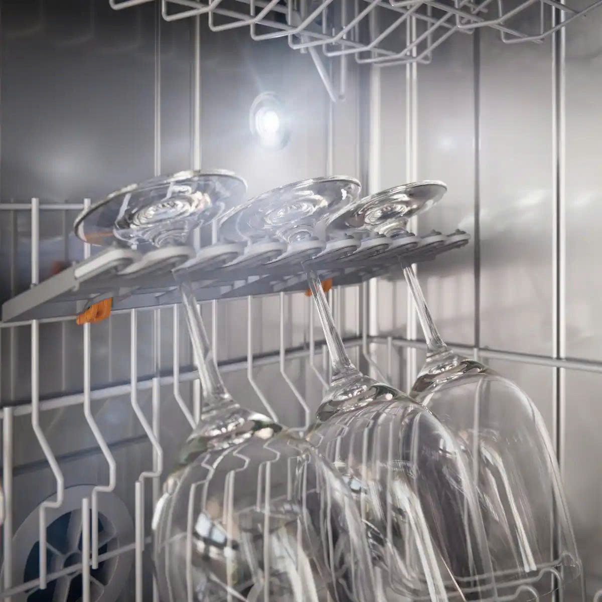 Ngay cả những chiếc ly thủy tinh và pha lê cao cấp cũng được bố trí ở vị trí tối ưu trong cả giỏ trên và giỏ dưới, mang lại hiệu quả làm sạch hoàn hảo và sự yên tâm tuyệt đối.