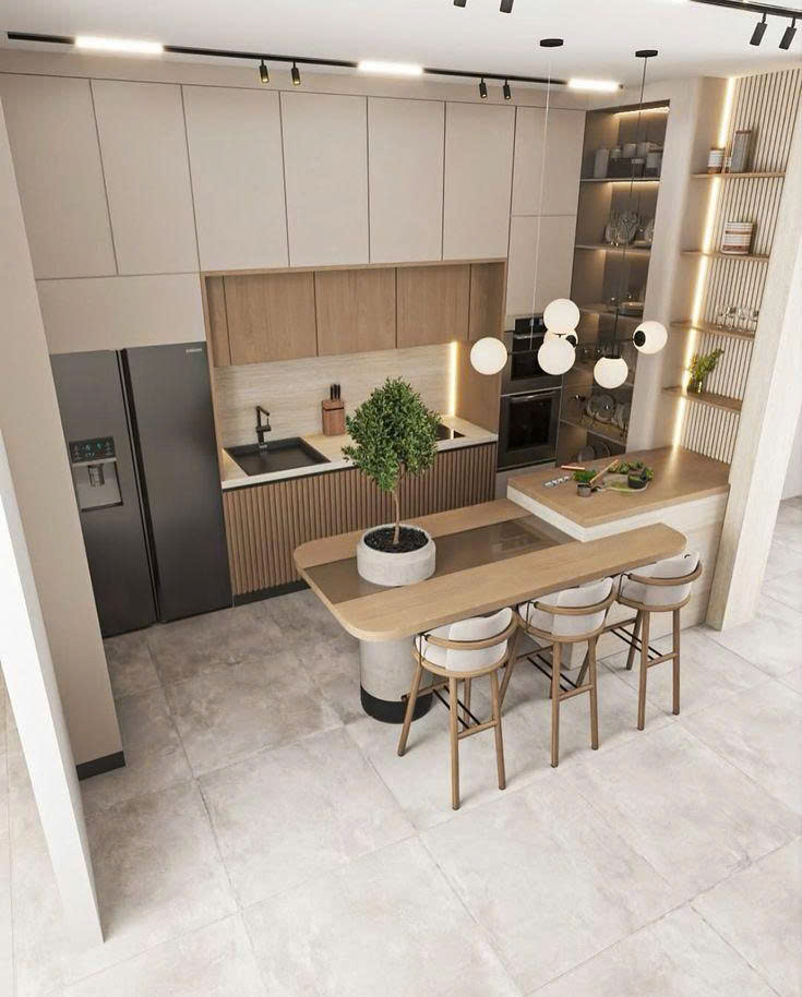 Thiết kế đồng bộ giữa bếp, lò nướng và máy hút mùi tạo nên một không gian bếp hài hòa, sang trọng, nâng tầm thẩm mỹ cho ngôi nhà.