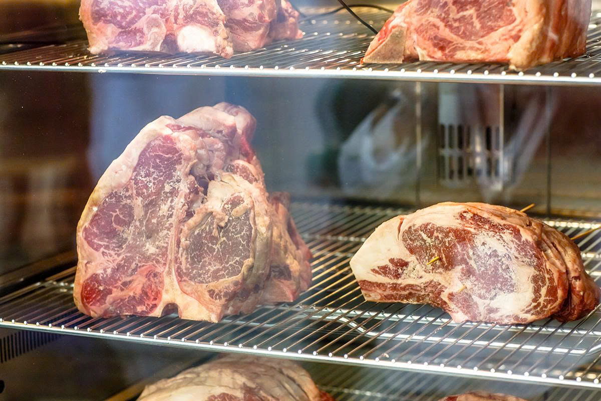 - Quầy thịt đôi có móc bằng thép không gỉ và ba kệ bằng thép không gỉ